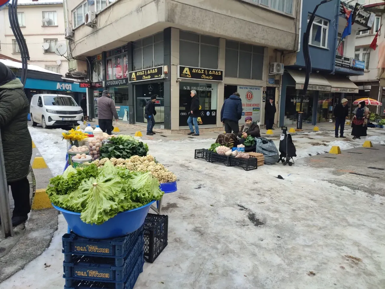 Pazarda kaldırımları da dolduranköylüler ise kardan dolayı tezgah açamazken açanlar da işlerin olmadığını ifade ediyor. Soğuktan dolayı vatandaşlar bu hafta alışverişe pazara gelmediği için Pazar durgun geçiyor.